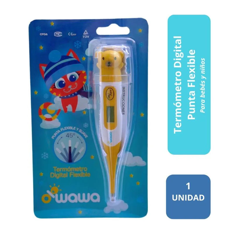 El Termómetro Digital OWAWA con punta flexible está diseñado específicamente para medir la temperatura corporal en bebés y niños de manera segura y cómoda. Su característica punta flexible se adapta al cuerpo del pequeño, reduciendo molestias durante la medición. La pantalla digital proporciona lecturas claras e instantáneas, permitiendo un monitoreo rápido y preciso de la temperatura en el hogar. Ideal para padres que buscan una herramienta confiable y práctica para el cuidado diario de la salud infantil.